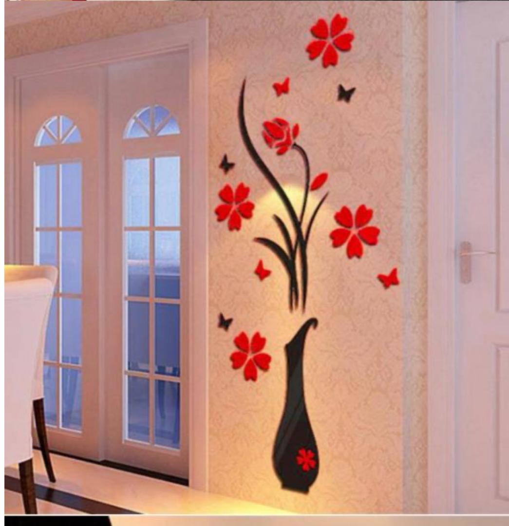 DIY Vase Flower Tree 3D Wall Stickers Decal Home Decor Adesivo De Parede Wallpapers For Livingrooms Kitchen Decorations